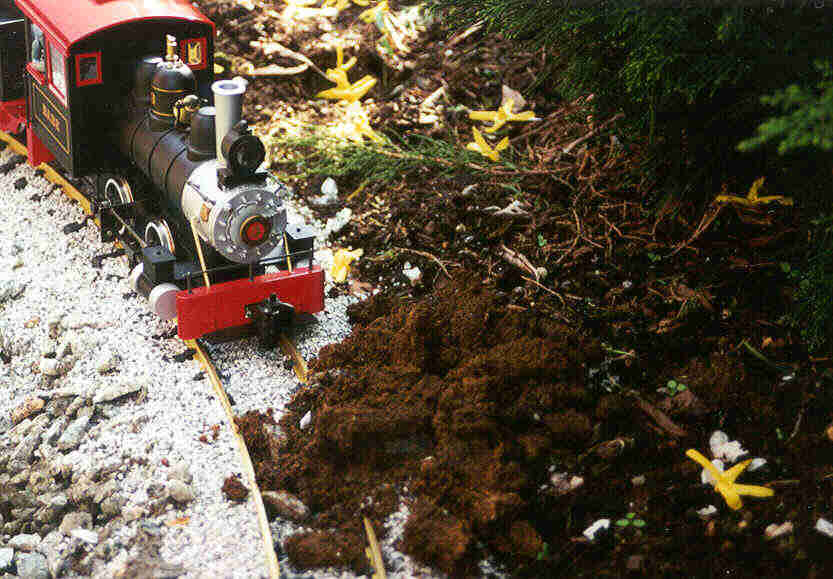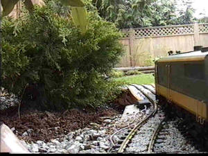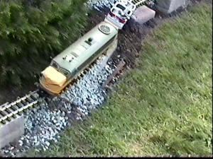 the temporary trackage sagged at Cedar Curve, derailing the line's only